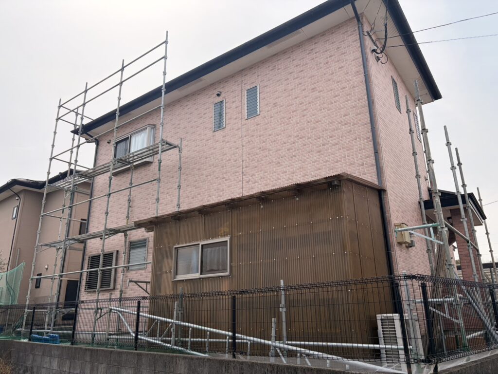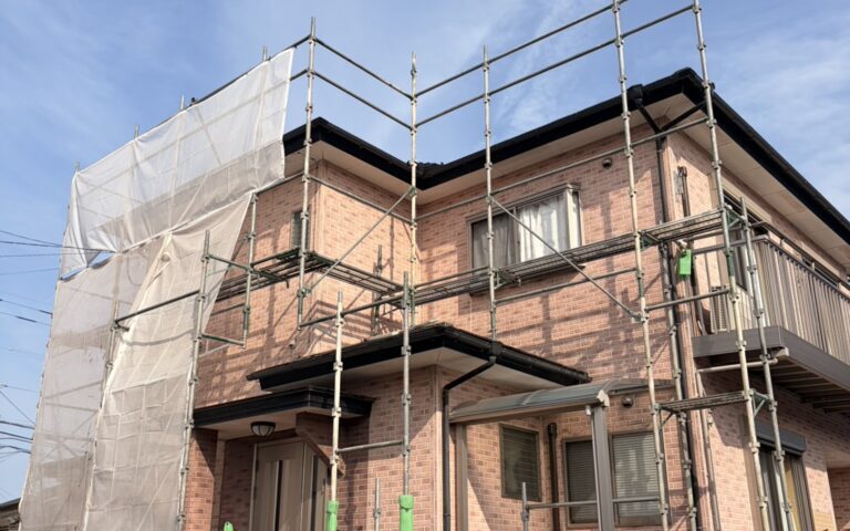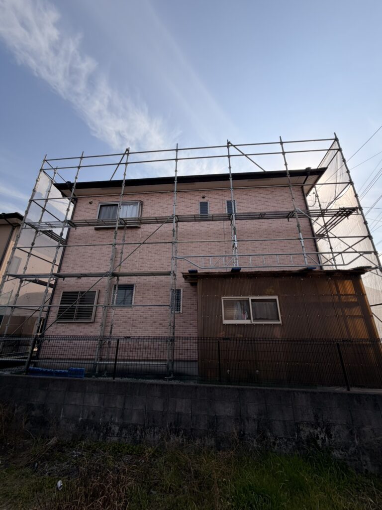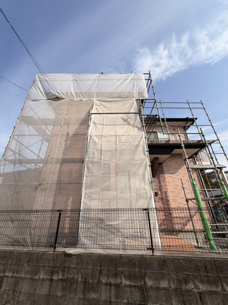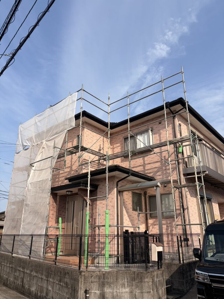 塗装工事は、まず安全に作業できる環境づくりが大切になるため、しっかりと足場を組んでいきます。