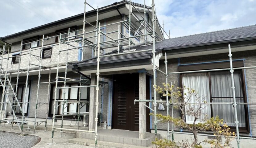 延岡市鹿狩瀬町K様邸で外壁付帯部塗装工事と倉庫屋根外壁付帯部塗装工事を只今施工中